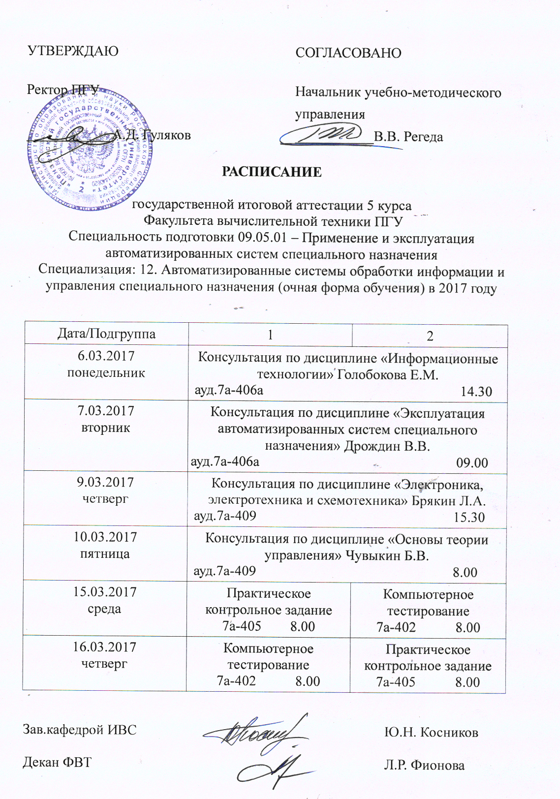 РАСПИСАНИЕ прохождения медосмотра студентов 2-3, 4 (не выпускной) курсов ФВТ